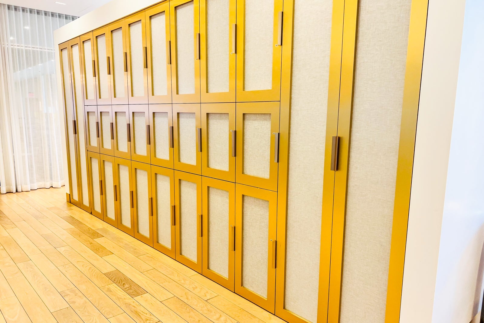 The station lounge at Moynihan Hall is quite sizable, with four distinct seating areas. At the entrance, there are lockers for luggage (apparently without the ability to actually lock them). Behind the lockers is a small seating area with a TV. Farther into the lounge there's more soft seating and some spots where you can work on your laptop. There's also a substantial dining area with various-sized tables.