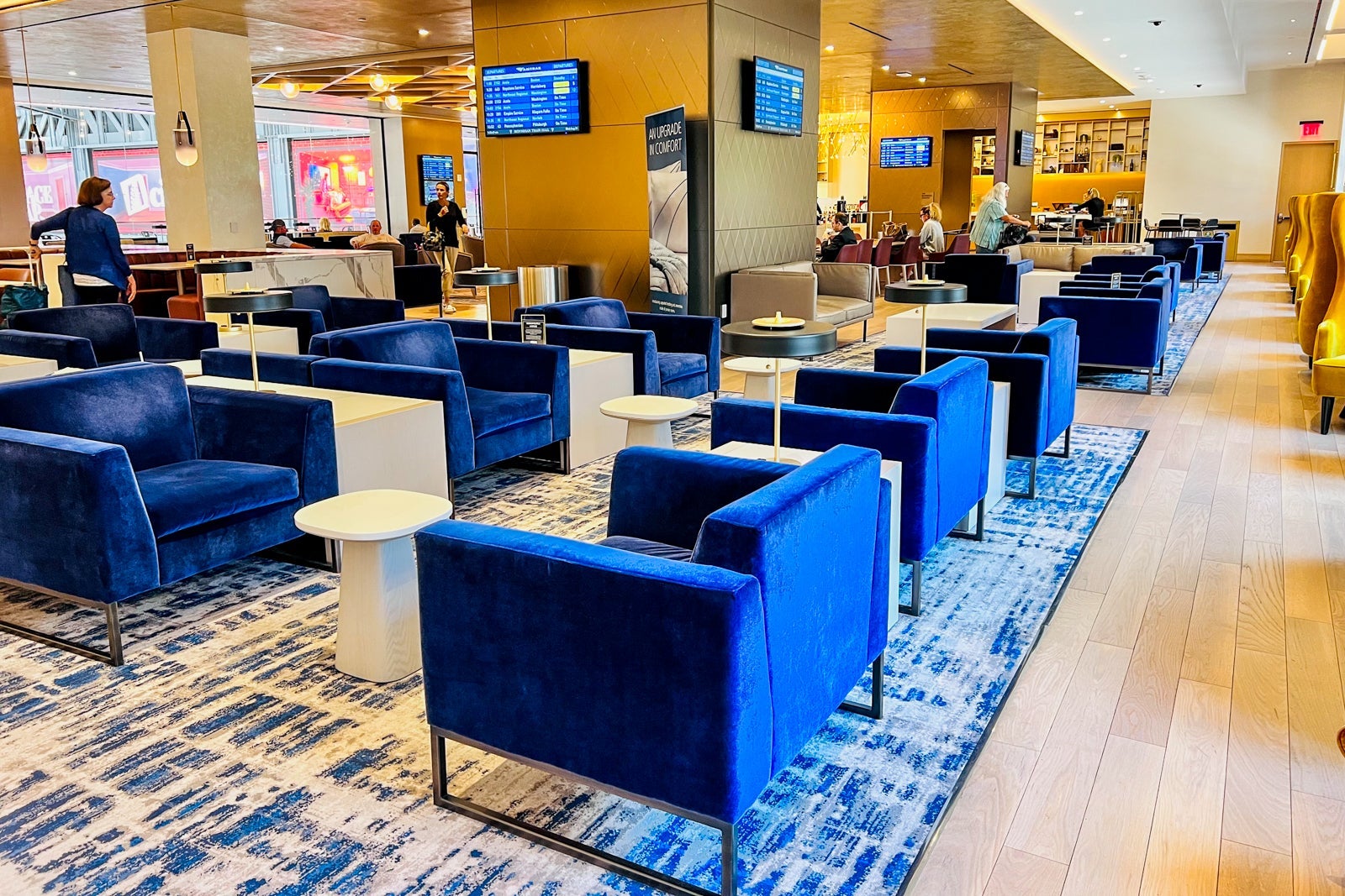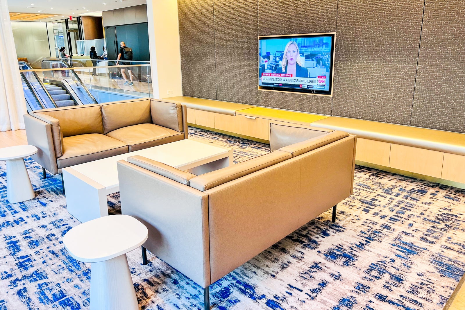 The lounge in Boston is quiet but the space is tired. The lounge at Moynihan Hall, on the other hand, is spectacular, arguably rivaling any domestic U.S. airport lounge run by the airlines (the only exception being the AMEX Centurion lounges).