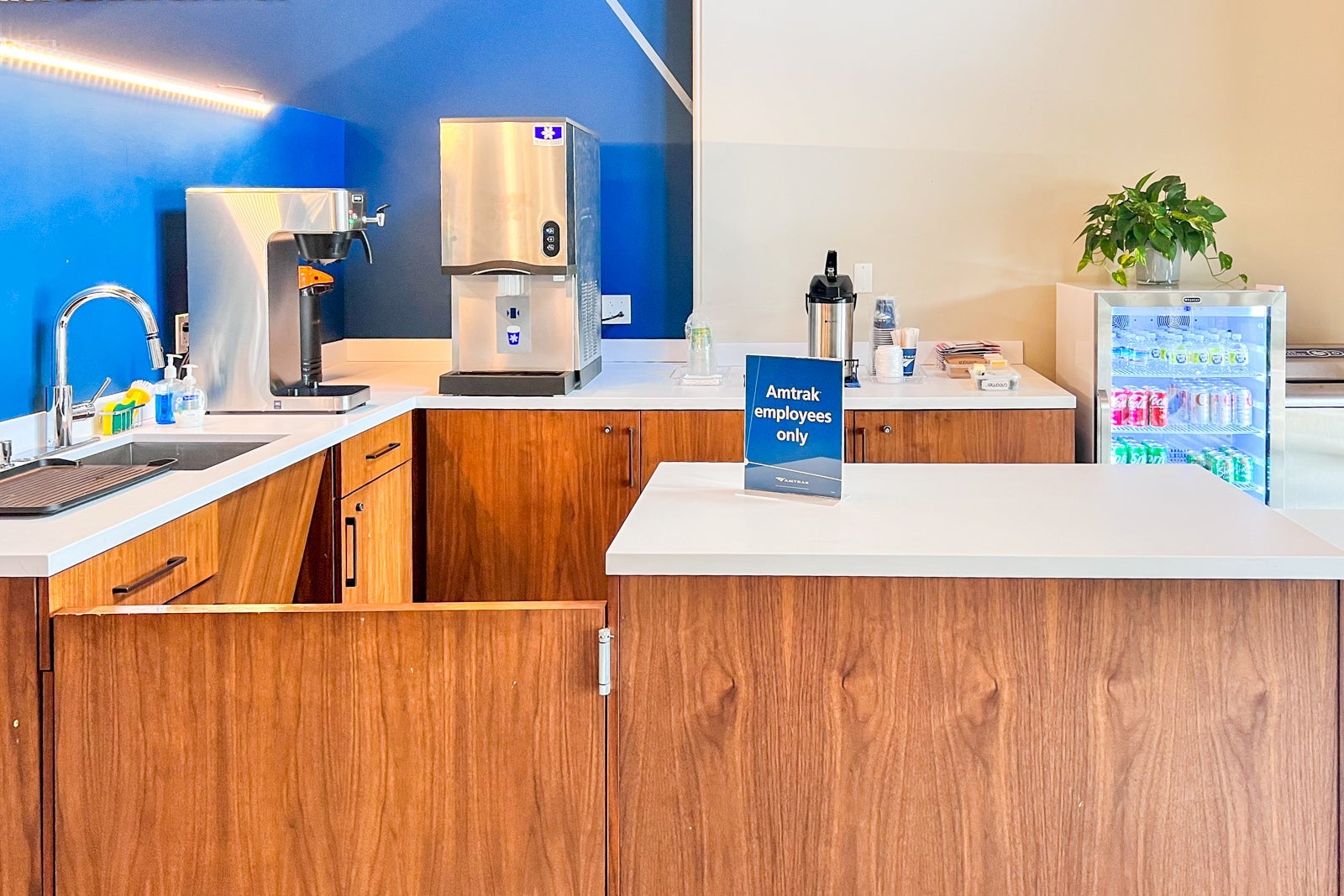An Amtrak employee quickly checked me in and pointed out a small, self-service snack area. The employee also noted that there was a slightly larger menu of hot drinks that the club staff could prepare for me upon request. The offerings in the club were quite limited, though.
