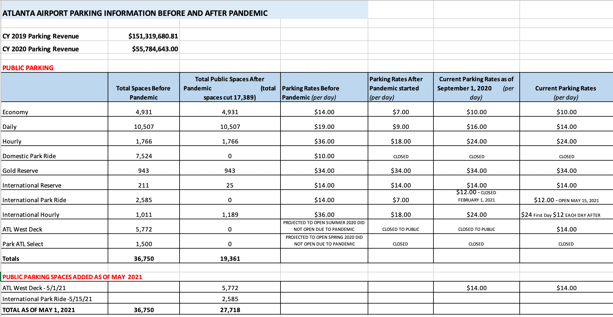As of May 2021, there are 27,718 parking spaces available now at Hartsfield-Jackson, and the rates vary depending on the parking location, said Stanciel. For the most updated parking information, travelers should visit the airport's website.