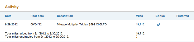 I checked back in on my account on Tuesday, and sure enough, the Multiplied Miles had already posted to my account (although it awarded me 49,712 miles for some reason, so I'm short 4 of what the Multiplier told me I would get):