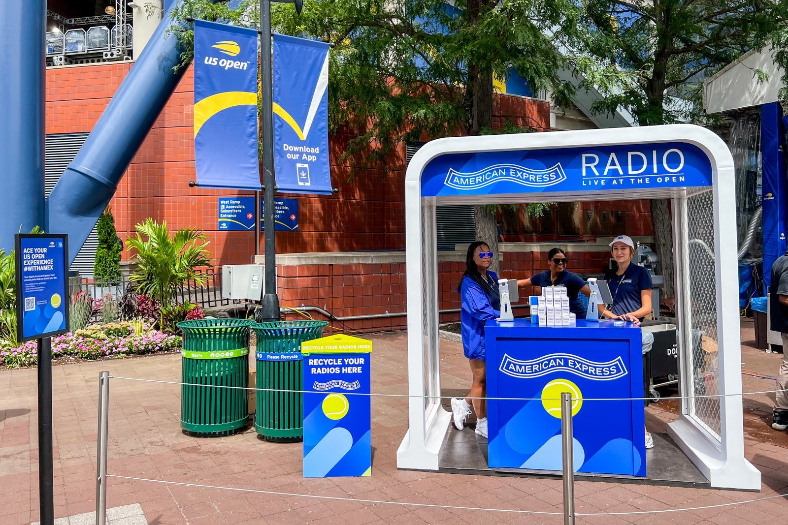 Since you can't be in two places at once, you can watch one match while following the other via ESPN on a free loaner radio. While supplies last, you can also get an earpiece radio with play-by-play coverage and highlights from the U.S. Open by showing an Amex credit card at a radio kiosk. Showing your card via mobile wallet is also acceptable.