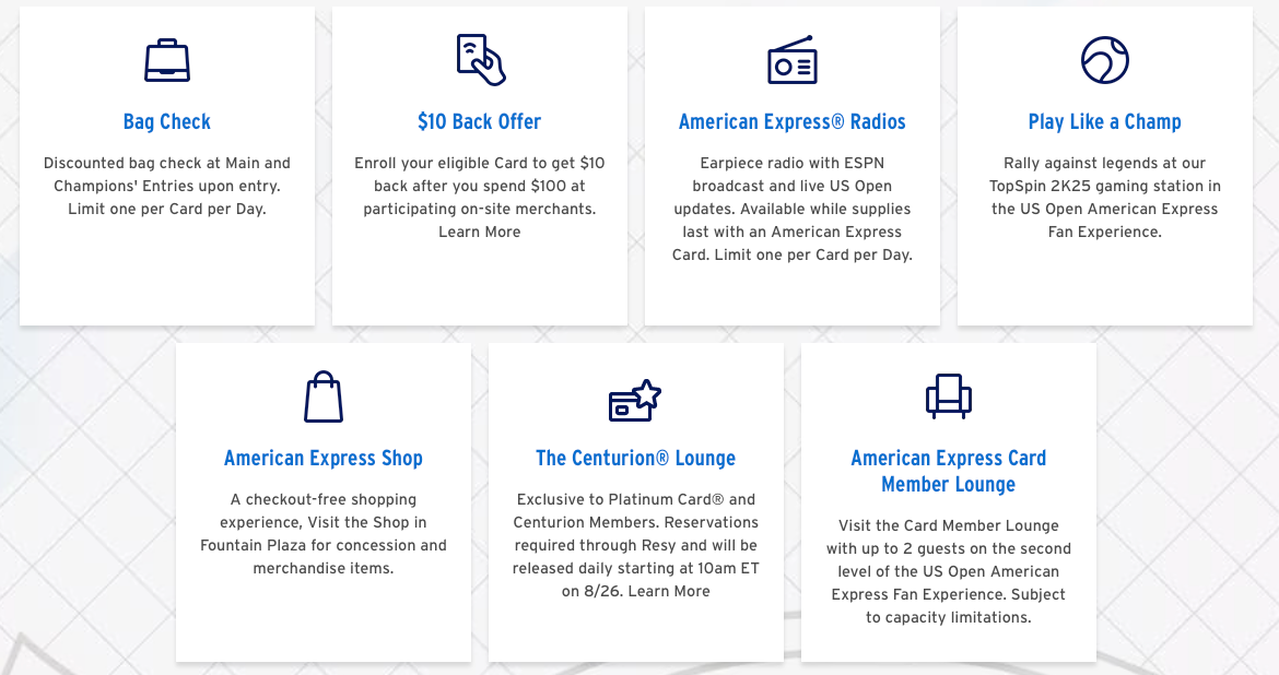 To get a better sense of what you can expect as an Amex cardholder at this year's U.S. Open, let's look at each Amex cardholder benefit and what you need to know to enjoy these perks.
