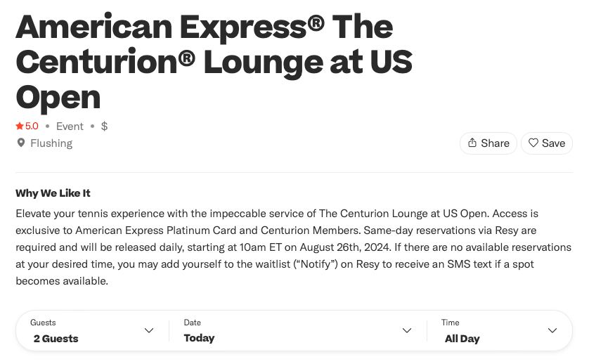 Amex Platinum cardholders can reserve US Open lounge space, plus additional perks