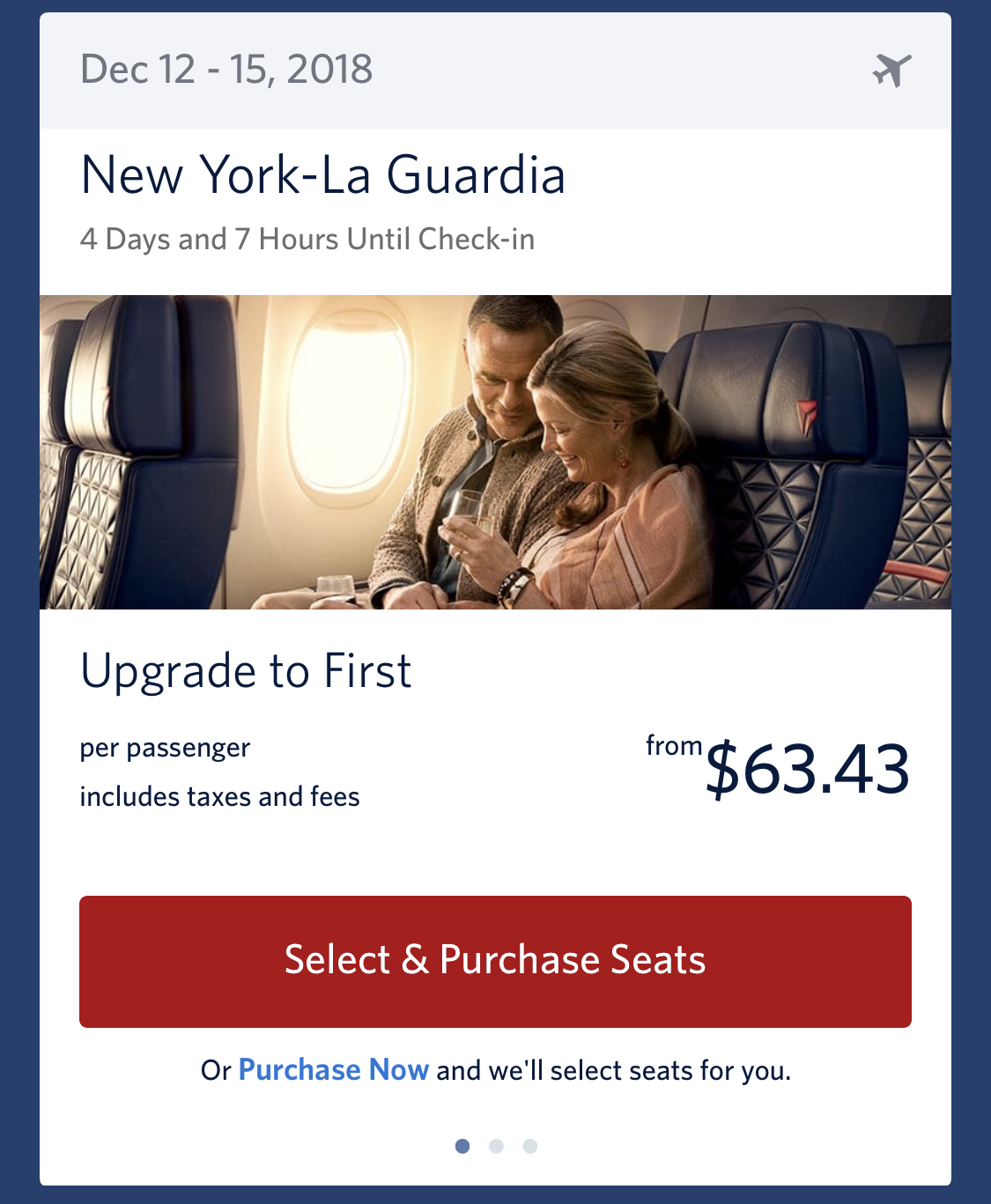 As shown above, I'm not seeing these mileage-based buy-up offers live in the Fly Delta app just yet (only cash), but it was mentioned on the aforesaid earnings call that it's coming in Q1 2019.