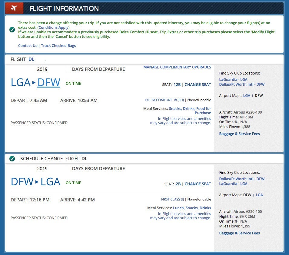 The lone holdout is an interesting one, as it's a multi-cabin experience. I purchased a round-trip ticket between New York (LGA) and Dallas (DFW), with the outbound in Main Cabin and the return in First Class. There's no upgrade option at all on that itinerary.