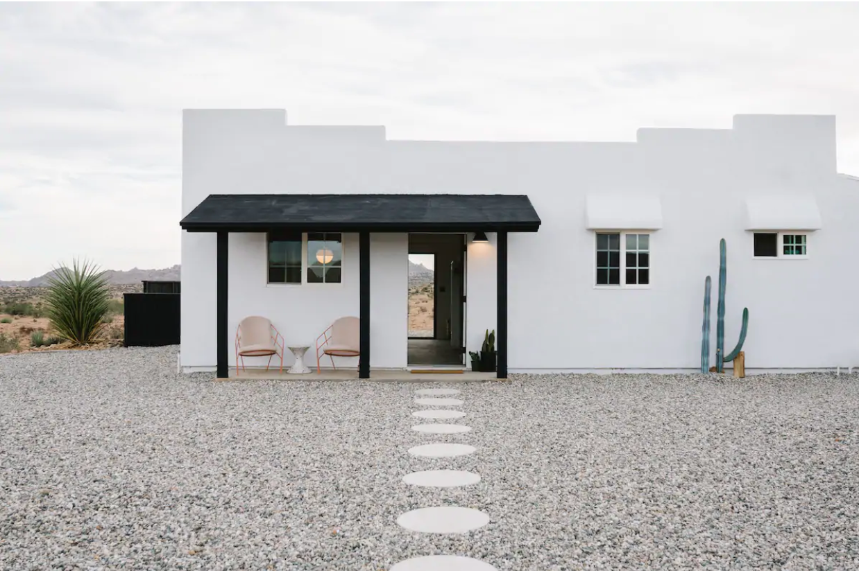 This adorable ranch house is located just 20 minutes outside of Joshua Tree, California. You can fit four guests here with two bedrooms and one bathroom.