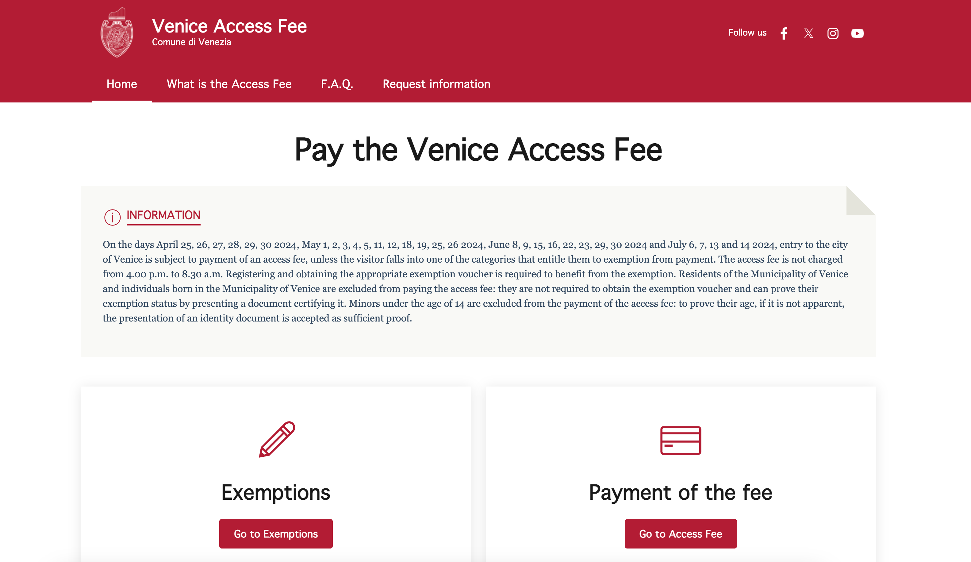 Once you're on the site, you need to click "Pay the Access Fee," which will take you to a site signposted by Venezia Unica. This is the official tourism site for Venice, and you should not pay this fee anywhere else.