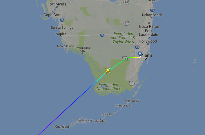 AA1498 flight path on Tuesday, November 14. Image courtesy of FlightRadar24.
