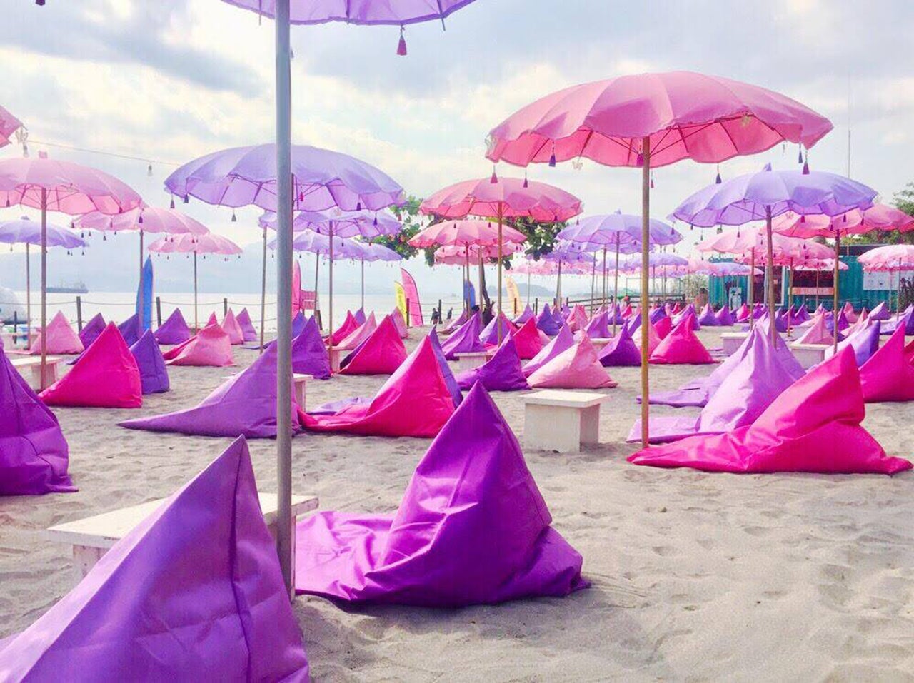 Travelers visiting the inflatable island can always opt instead to lounge in the sunbathing section, or float around on blow-up creatures that range from unicorns to flamingos and narwhals, among others. Travelers can also hang out at Bali Beach, which is dotted with sherbet-colored pink and purple umbrellas and matching beanbag chairs overlooking the massive floating island. Be sure to check their schedule for events in advance, as sometimes Bali Beach and the Inflatable Island will host special parties, complete with beer pong and ninja wars.