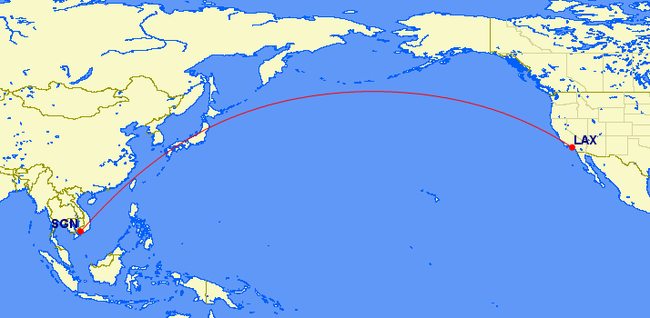 Vietnam Airlines became the second operator of the A350 in 2015 after Qatar Airways and has expressed interest in using an A350-900 to fly between Ho Chi Minh City (SGN) and Los Angeles (LAX). If that transpires, it'll become one of the longest flights in the world at 8,169 miles.