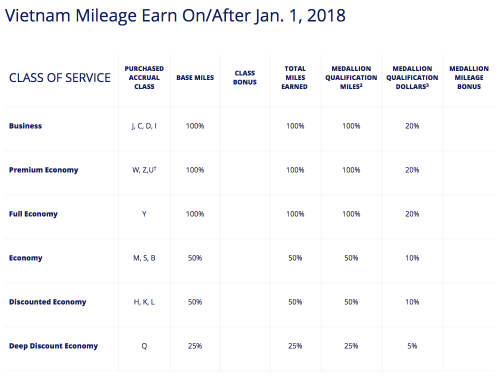 Vietnam Airlines is indeed a Delta partner, with its latest mileage accrual chart shown above. While the carrier isn't a Tier-1 partner, you can see that a hypothetical SNG–LAX flight would earn 1,633 MQDs (20% of 8,169 miles flown) if holding a business, premium economy or full economy ticket. If you're able to score a discounted fare, you could spend less than $1,633 each way and yet still earn 1,633 MQDs toward Delta elite status. You can dive deeper with our guide to maximizing Delta earnings when flying on SkyTeam partners.