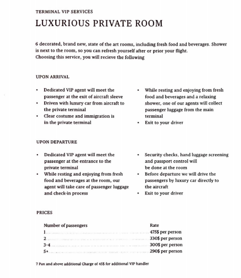 This service was invaluable for me -- this was a stress-free end to an amazing trip. It really was the opposite of everything you hear about trying to leave Ben Gurion Airport. I really didn't have time to spend hours queuing up at immigration and didn't want to start off a long flying experience by dealing with extra security questioning and lines.For anyone in a rush or who would prefer a calmer and more luxurious arrival or departure, this VIP experience at the Fattal Lounge is very much worth it. Plus, if you have more than one person, the price goes down, making it more affordable (even if it's a private room) for small groups or couples.
