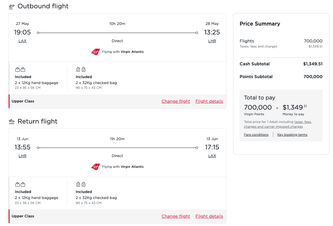 I would not recommend anyone redeem their Flying Club points at these rates. If you want to travel during peak season, you can likely find a much better deal through other programs or by booking a cash fare. This especially holds true when you consider that TPG values 700,000 Virgin points at $9,800 per our November 2024 valuation of Virgin points.
