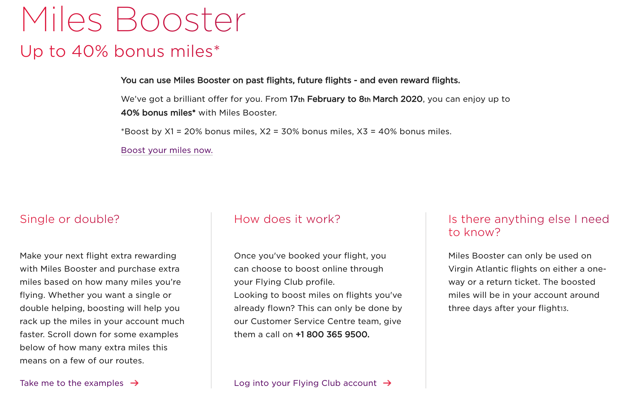 For those who are boosting future flights, Virgin Atlantic notes that "the additional miles that you purchased will credit to your Flying Club account approximately 72 hours after the date of your first flight leg /sector." So, keep that in mind if you have an immediate need for these miles.