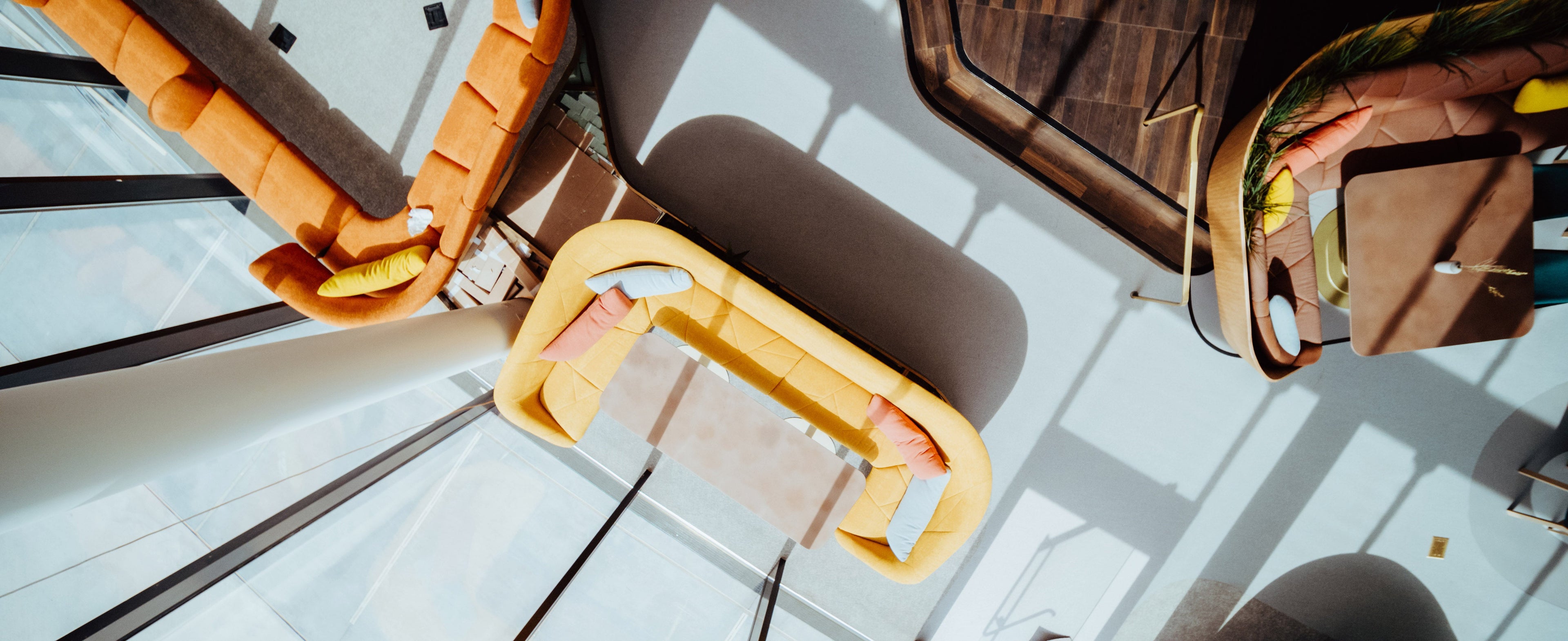 The color scheme between the first floor (Gaia) and the second floor (Cirrus) gradually graduates from earth tones to whiter and gray colors.
