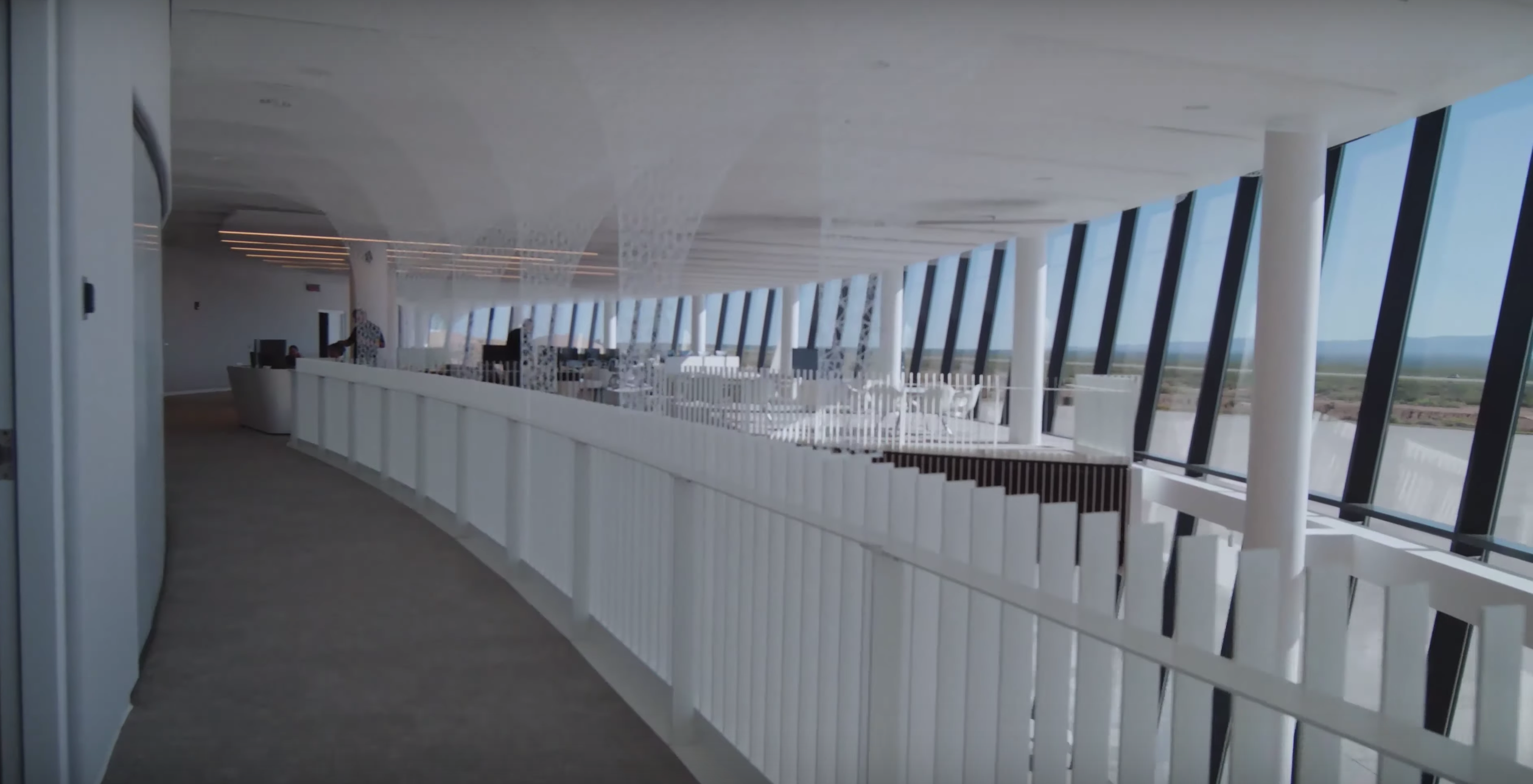 The second level is named Cirrus and is home to Spaceport America's mission control. According to Virgin, Cirrus was designed to reflect "the skies beyond and providing a clean environment supporting operational focus."