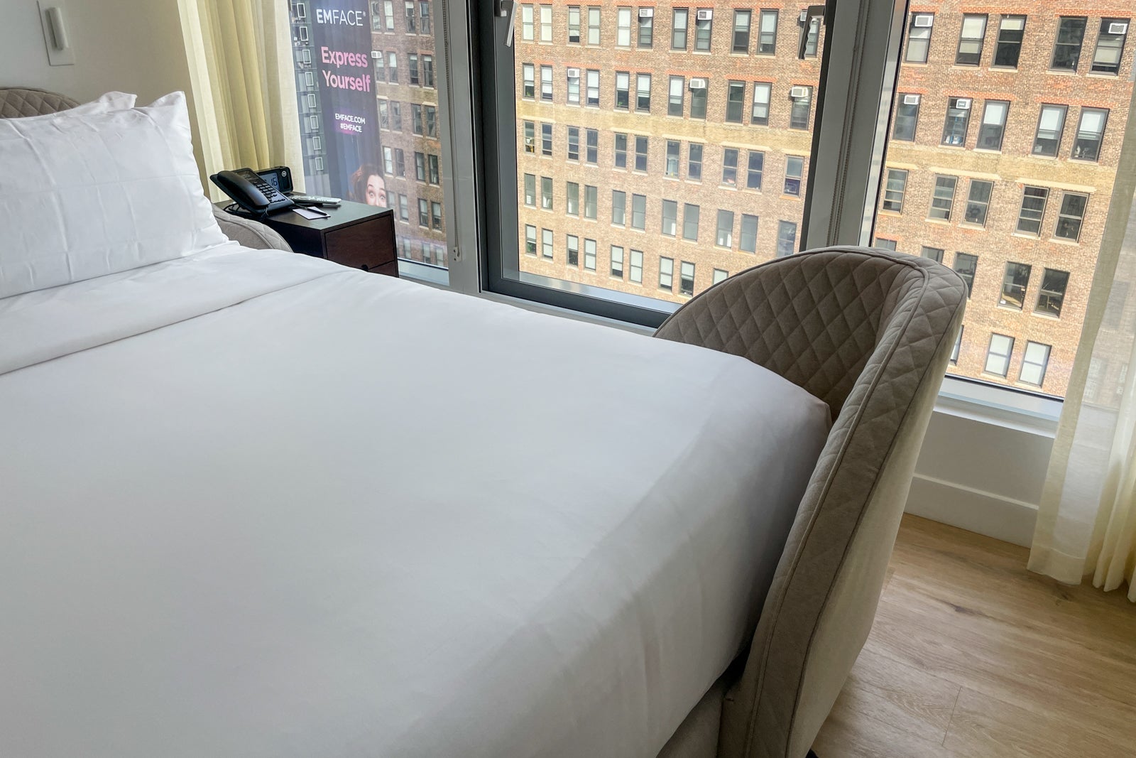 The rooms come in various configurations — including king-size rooms and ones with double beds. My favorite part of the room I toured was the spectacular view of the Empire State Building directly from the bed. Imagine waking up in the morning to a sunrise view of one of the world's most famous buildings right from your pillow or crashing after a glitzy New York night to its twinkling, hourly light show. (Not every room will have the same views, so opt to choose one in the booking process or speak directly to the hotel while reserving.)