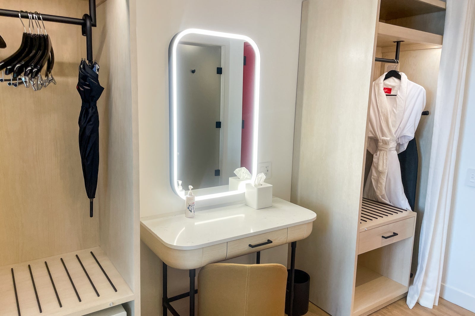 The Dressing Room has a massive shower (seriously, I've loved every Virgin Hotels shower I've tried), a closet, a vanity with a mirror (perfect for selfies ... not that I would know) and creature comforts like robes. The Dressing Room can be completely closed off from The Lounge, so a guest getting ready can spread out without disturbing someone who might be sleeping or working in the other room.