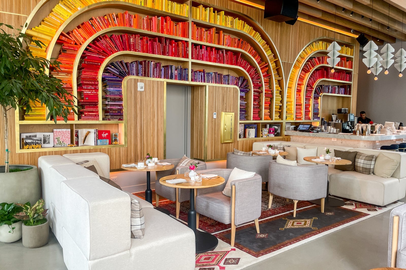 The second is this rainbow-like bookshelf in the hotel's restaurant, Everdene.