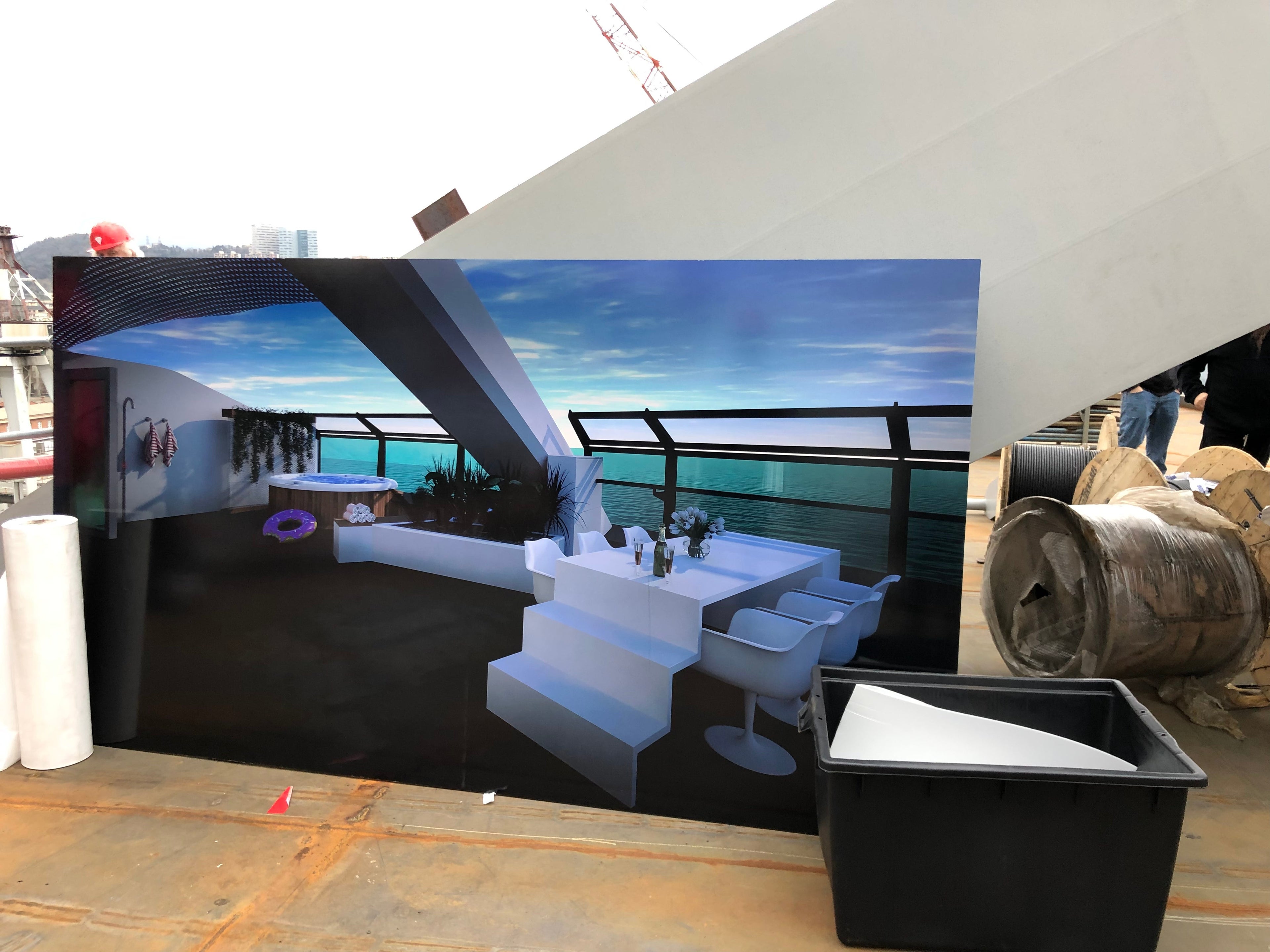 Inside, passengers can expect a hot tub, a music room that can be transformed into an extra bedroom, two hammocks, an outdoor shower and more. As of Saturday's preview, there was still plenty of work to be done on the Mega RockStar Suites, just like the rest of the ship.