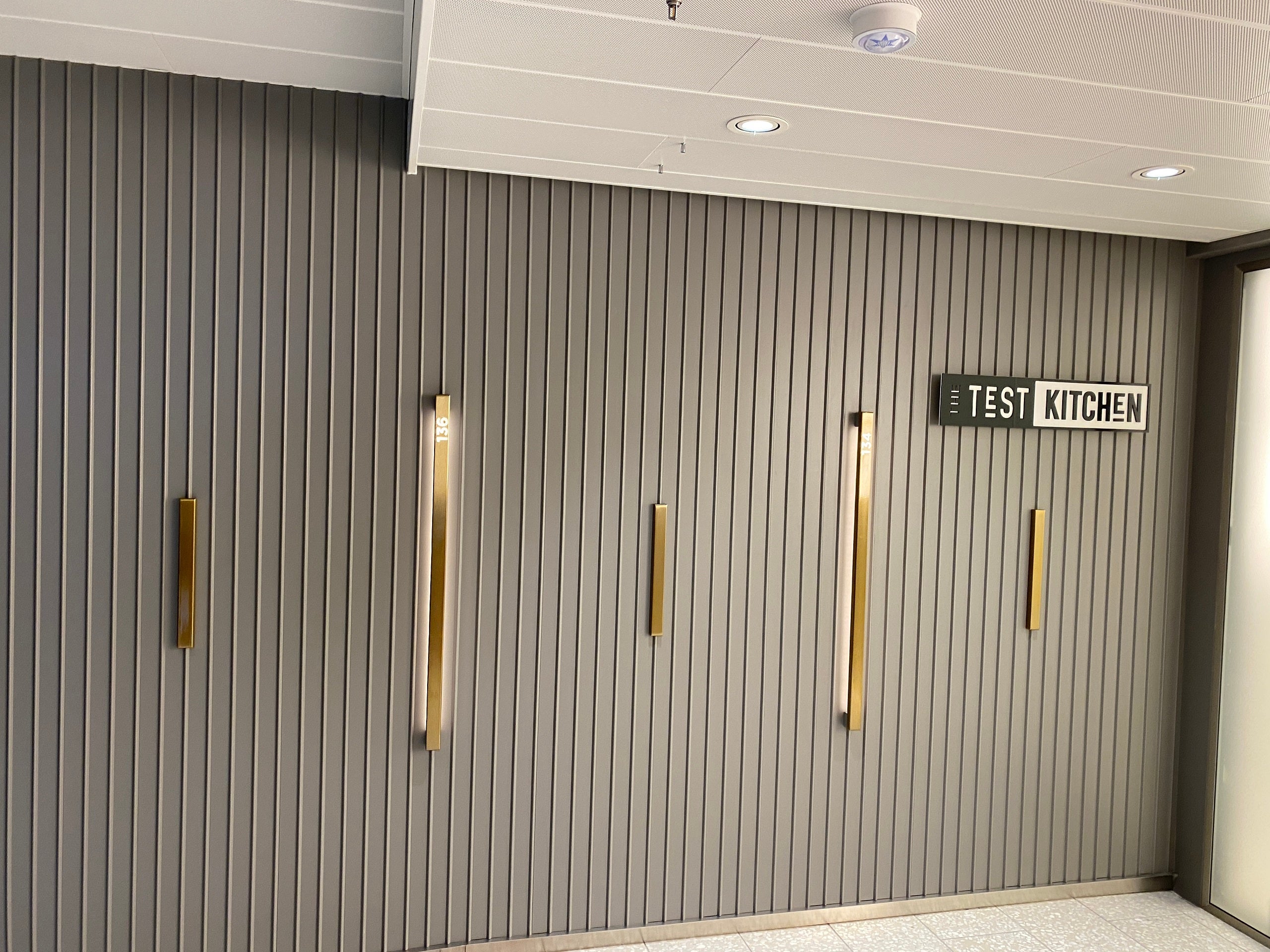 Throughout the vessel, you'll see nods to the ship's construction. I think the most fun are the metallic bars you might see on some of the walls, including the ones just outside of the Test Kitchen. They bear numbers, which indicate the ship's structural frame lines.