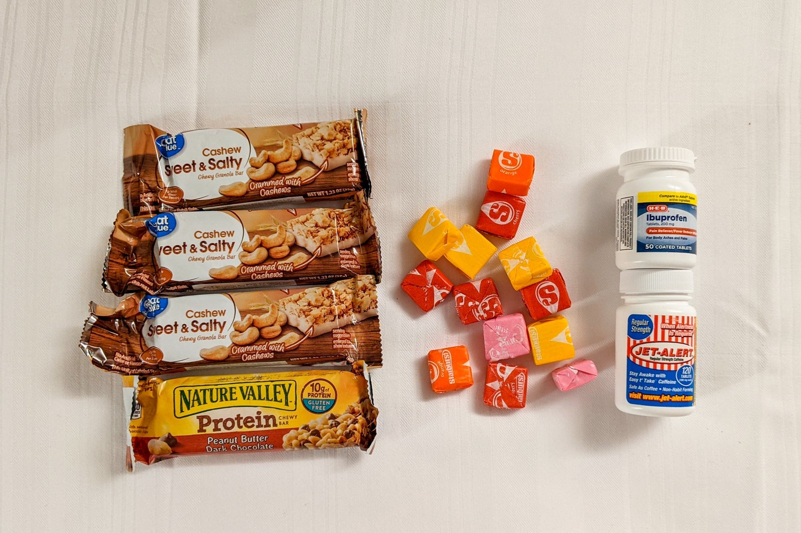 - Nonperishable snacks, such as granola bars and sunburst