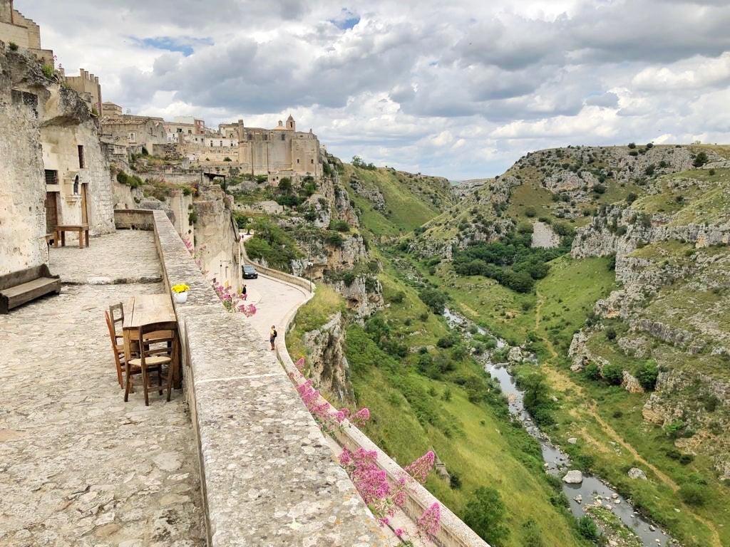 As we walked the stone streets, we saw cheerful restaurants and shops. Fabio led us to Sextantio Le Grotte della Civita, a member of Design Hotels built into a series of caves overlooking the ravine (sadly, this particular property isn't eligible to book through Marriott). Most of the rooms were occupied, but the young man at the front desk led us into a room with a simple bed in the middle of a stone cavern. The uneven floor led down to a modern bathroom. Each of the hotel's 18 rooms is completely unique because each occupies a grotto carved into the hillside. For tourists who visit Matera today, staying in a cave dwelling is a once-in-a-lifetime experience — though it doesn't come cheap. The few rooms that are available this summer range from €360 to €800 ($408 to $906) per night.