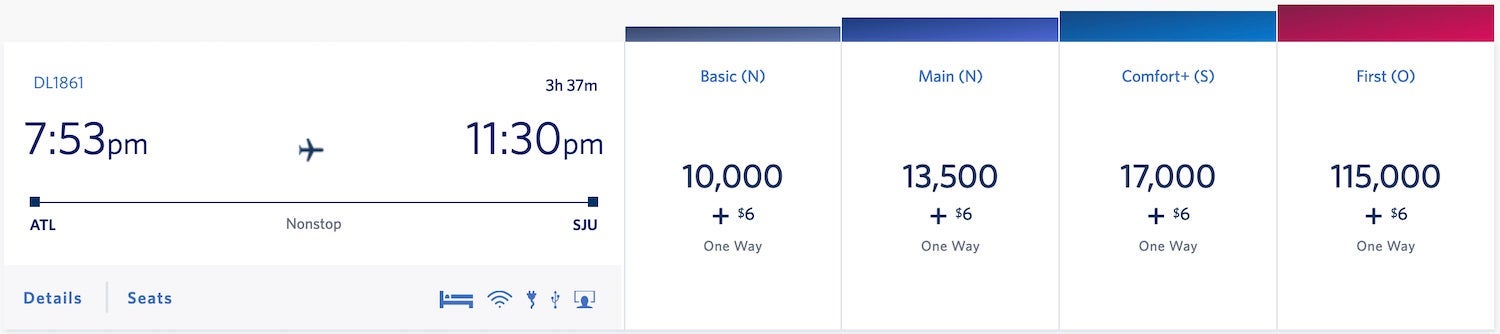 Delta is also pretty generous from its Atlanta hub, with flights as low as 10,000 SkyMiles one-way in basic economy.