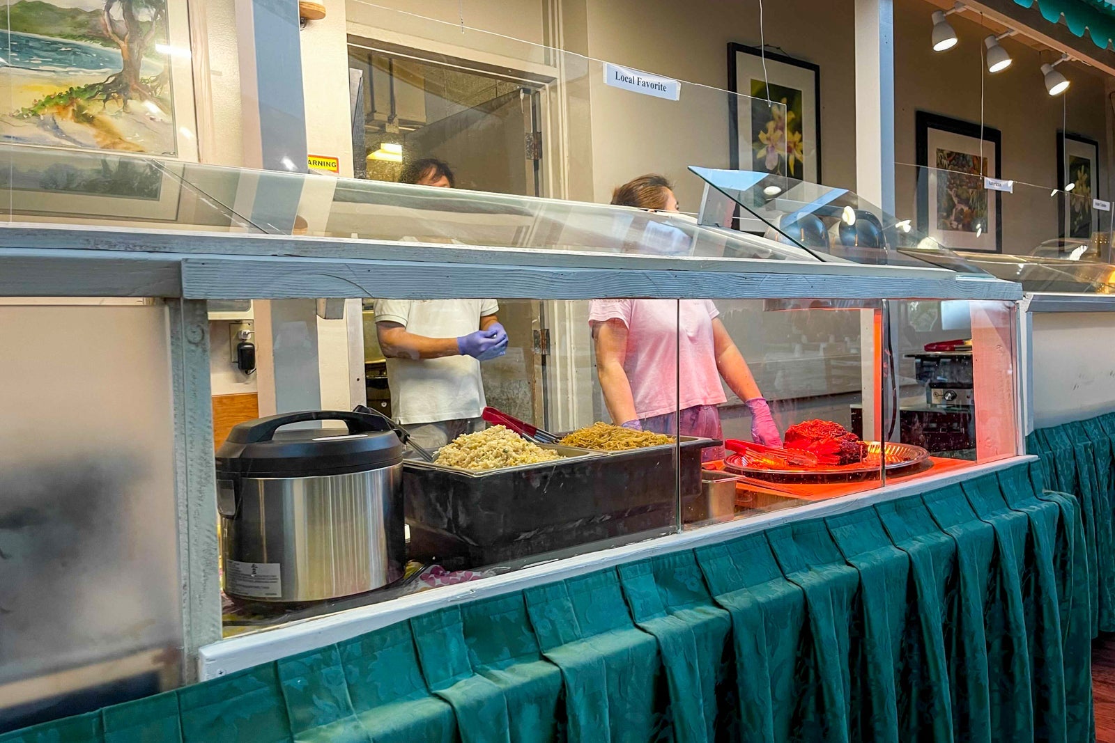 Buffets are open but very much retrofitted for the COVID-19 era. A server had to scoop up the food you pointed to and you had no access to serve yourself.