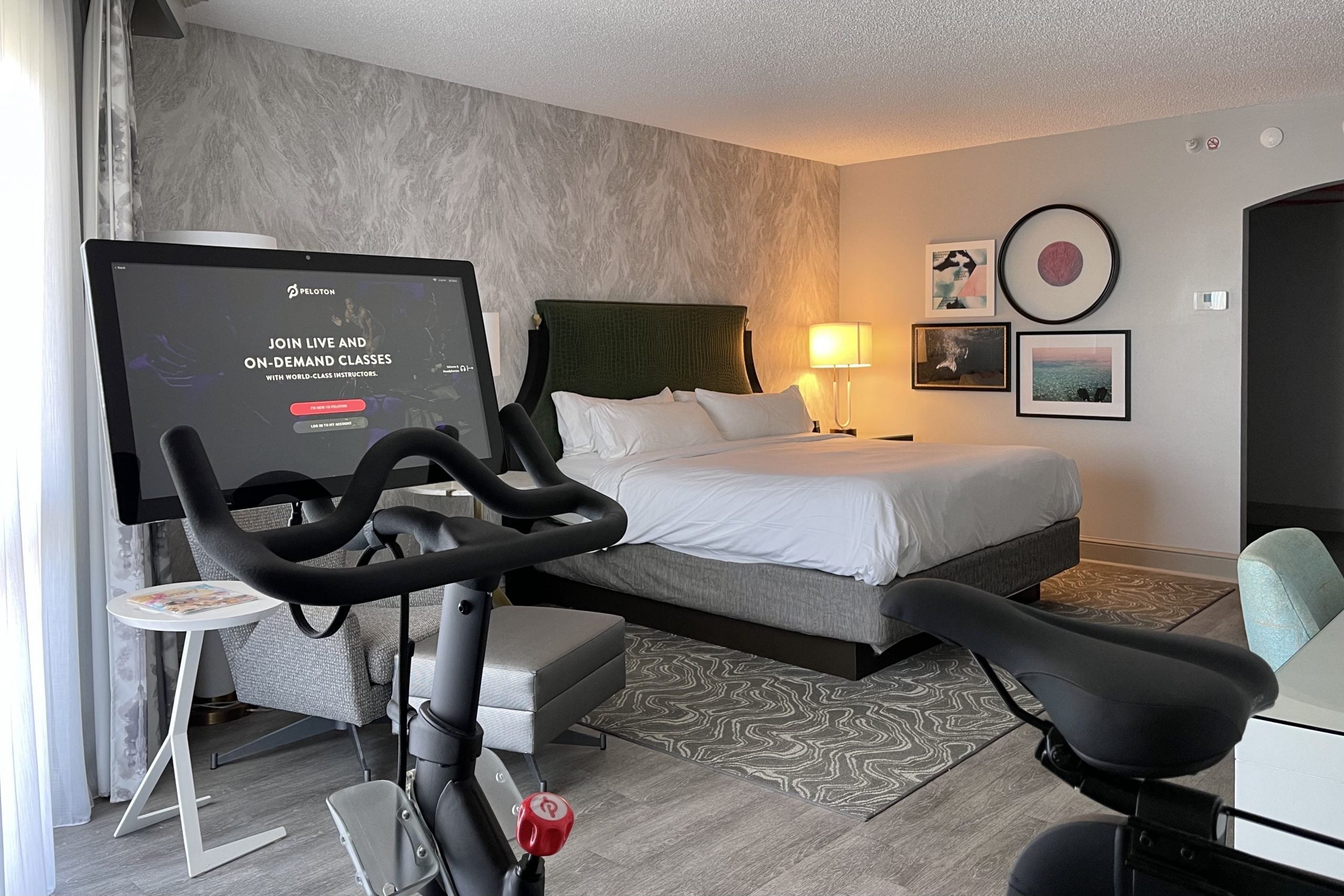 The day before check-in, I used the chat tool in the Marriott app to request a room with a Peloton. While they normally come at a premium of nearly $200 per night, I'm eligible for upgrades as a Bonvoy Titanium member, and the agent assigned me a bike-equipped room right away.