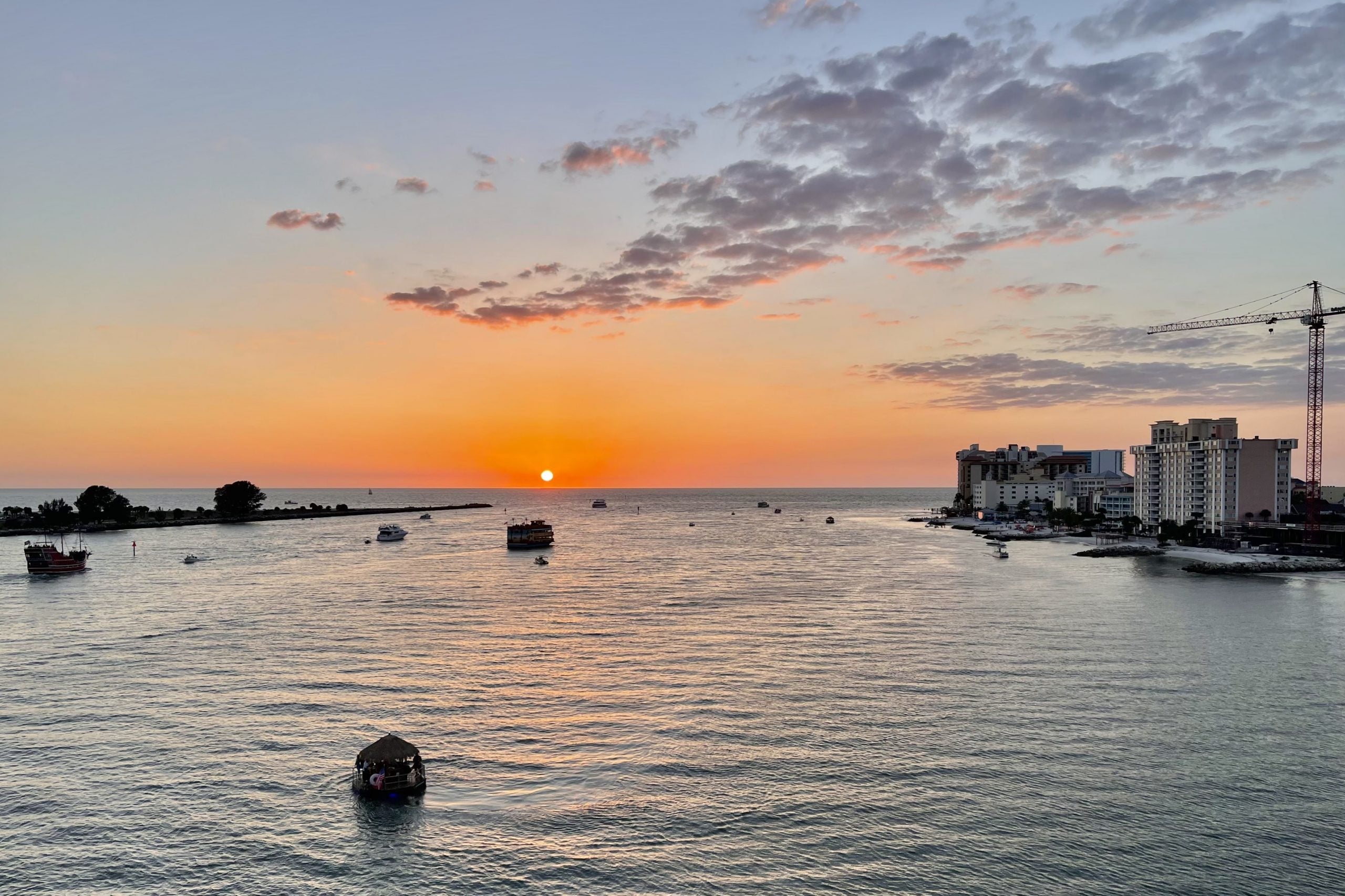 Just before sunset, I found a perfect viewpoint on the Gulf Blvd bridge, with views of Clearwater, Sand Key and the Gulf of Mexico in between.