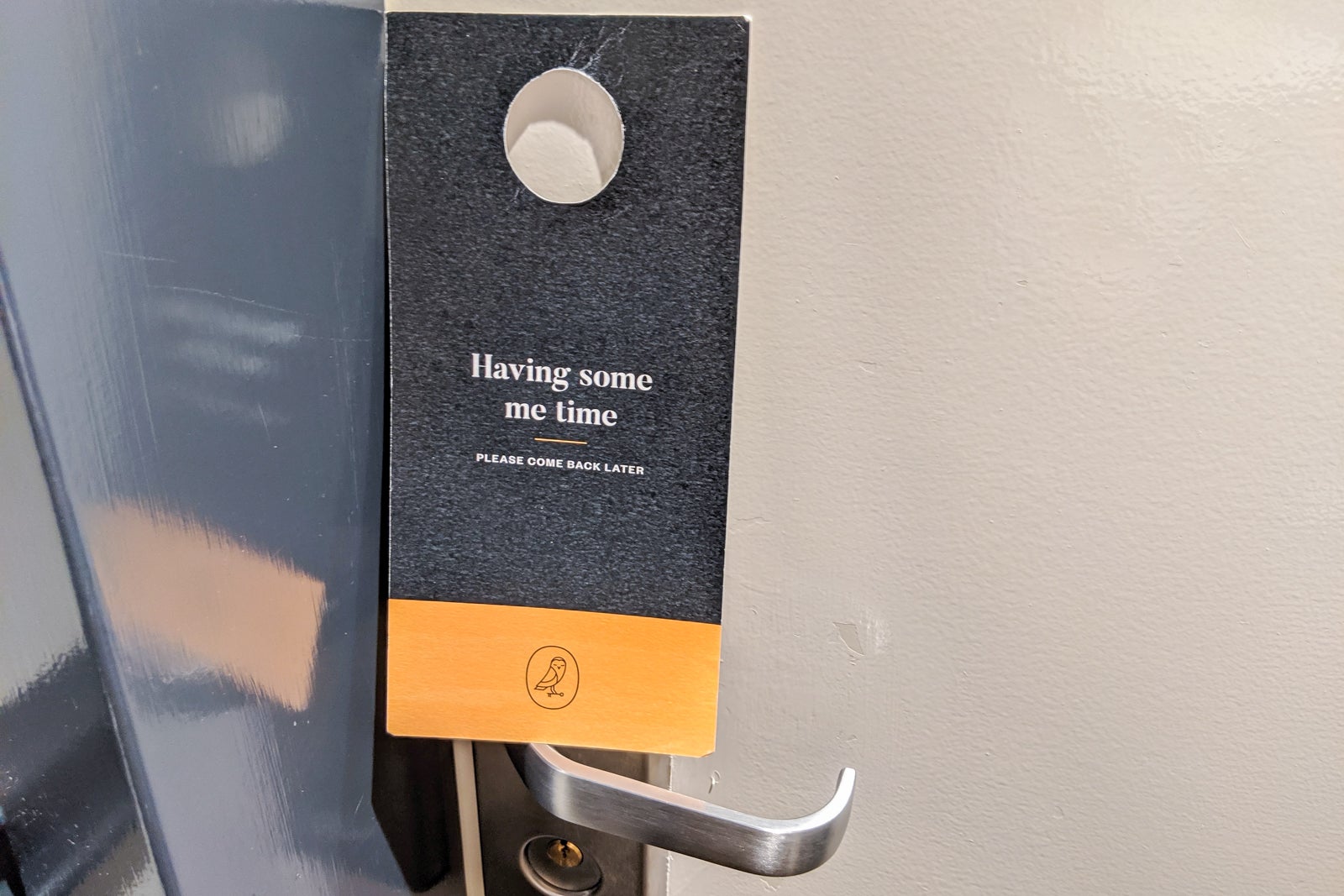 One aspect that will be consistent between voco hotels? Three bird mascots. You'll see these all over the hotel. The voco room keys have a finch holding a key. The "Do Not Disturb" sign on the room door has a sleeping owl, also holding a key.