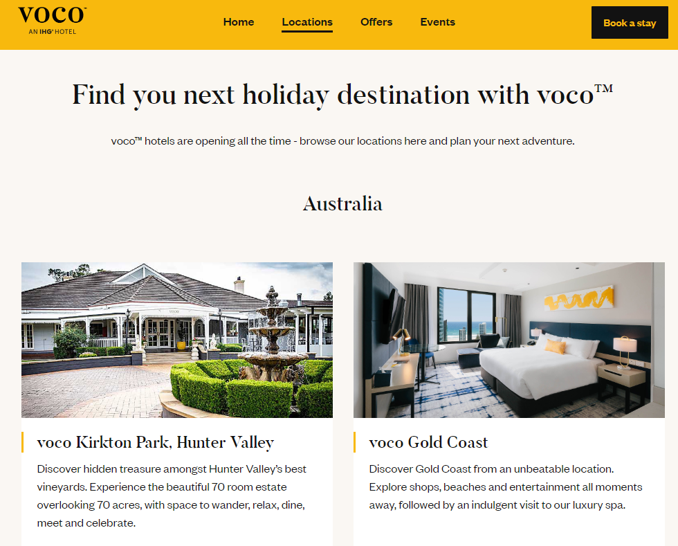 A little over a year after the brand launch, there are now six open voco locations: two in Australia (Gold Coast, Hunter Valley), three in the United Kingdom (Solihull, Cardiff, Oxford Thames) and one in Dubai.