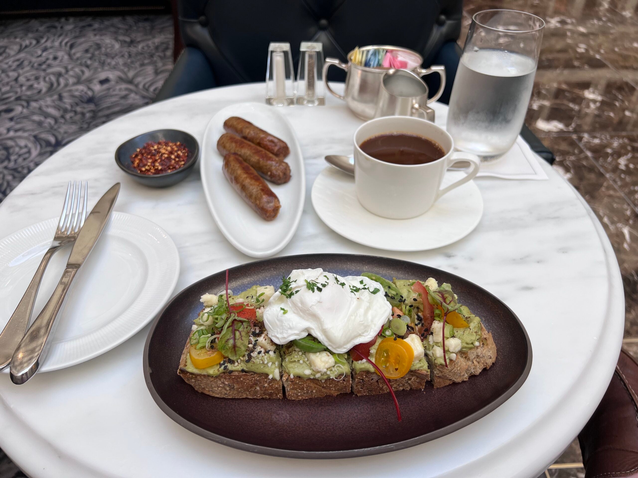 I decided to go with avocado toast after the prior night's red meat. It cost $26, so maybe this is the avocado toast Australian mogul Tim Gurner was talking about in 2017 when he said millennials can't afford to buy a house because they're too busy shelling out for the breakfast treat. However, one could do worse: An egg white omelet was on the menu for $32 while a lobster waffle was available for $49.