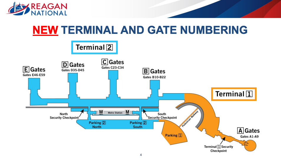 The change happens on June 4, when DCA's gates will go from an all-numeric numbering scheme to an alphanumeric one, a spokesperson for the airport's operator, the Metropolitan Washington Airports Authority (MWAA), told TPG. It's a numbering scheme already in place at MWAA's other airport, Washington Dulles International Airport (IAD).