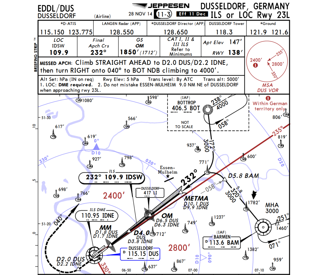 Standard go-around procedures for runway 23L call for pilots to climb straight ahead for two miles before turning right and climbing to 4,000 feet. If the pilot was cleared to turn left after a missed approach, it likely was expected to be done further downfield — not directly over the terminal.
