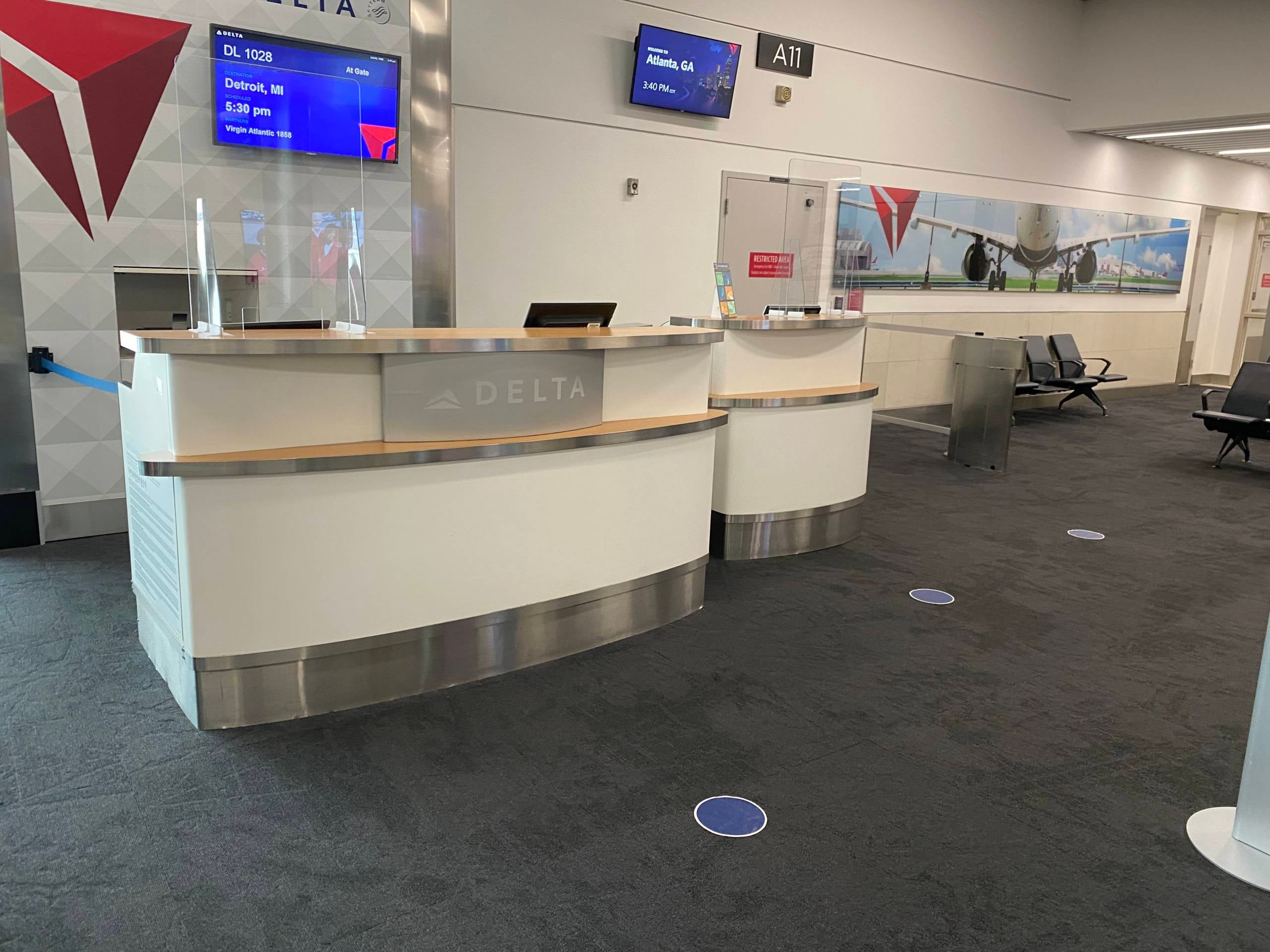 Delta has taken ownership of gate areas at the Atlanta airport and regularly sanitizes the entire immediate vicinity. Azeem Mistry, Director of Airport Operations for all of Delta and the lead for Delta's electrostatic sprayers (which we'll discuss below), told me the goal of all Delta sanitizing efforts is to disinfect the high touch points of gate areas and airplane cabins.