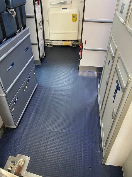 The 737-900 I was on was noticeably cleaner at first sight than any plane I've been on. The first test I wanted to complete was walking on the forward galley surface you transit through the boarding door. Road warriors know this is often an incredibly sticky floor. You regularly hear your shoes peel off of due to the stickiness left behind by galley spills and high traffic. The floor was spotless and clean, a good sign for the rest of the plane.