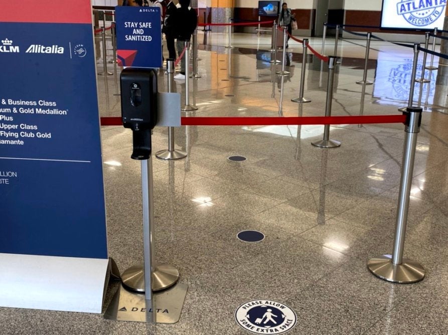 The Delta check-in area in the ATL South Terminal remained largely empty during my visit (my first since March 5). Differences were, however, immediately noticeable. You can't walk more than 20 feet without seeing hand sanitizers or social distancing signs and floor markers.