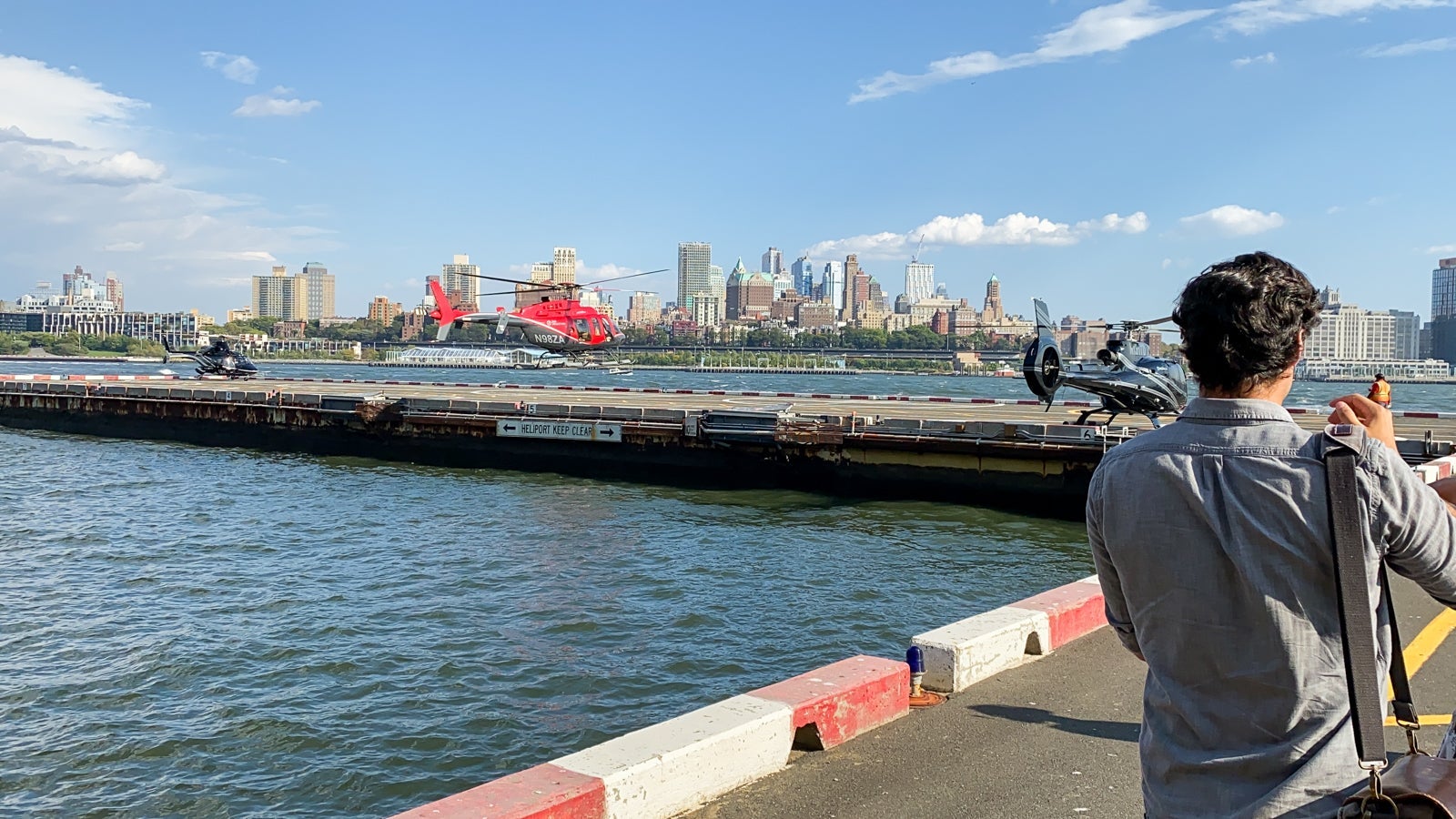 After our boarding passes were scanned, the helicopter pilot and heliport personnel escorted us out to the helipad, which is located at the mouth of New York City's East River.