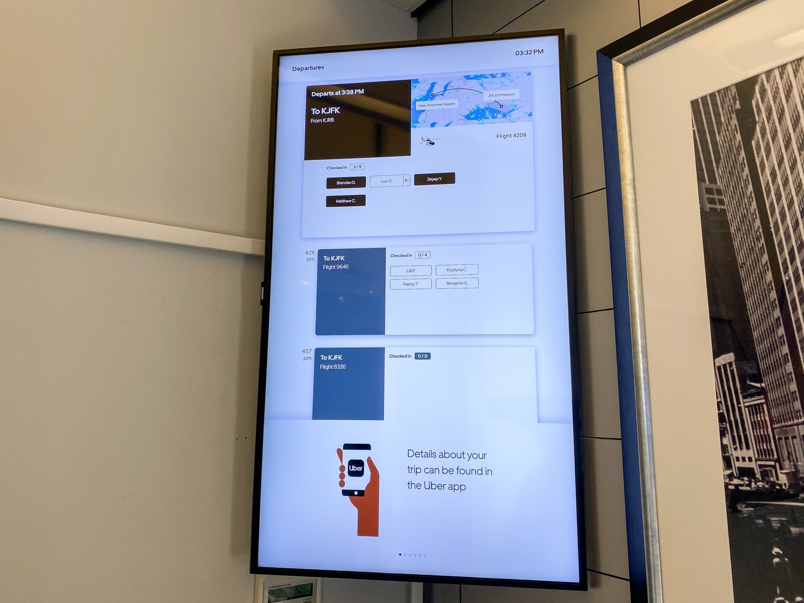 The lounge is quite small and unfortunately you won't be given amenities like the free rosé that BLADE offers. However, Uber wants it that way, as it's trying to minimize downtime as much as possible, and that it did. We probably spent no more than four minutes in the lounge. The Uber agents quickly got us checked in, gave us our boarding passes and showed us a safety video. A sleek display in the corner of the room showed details of the flight.