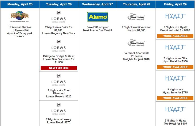 Next week is the fifth and last week of Daily Getaways for 2016, featuring just three offers: Avis rentals, Marriott gift cards and even more Vegas packages. Check back next Monday for my take on these offers.