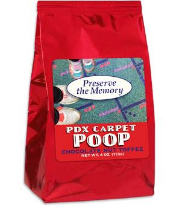The design was emblazoned on souvenirs ranging from neck pillows, caps, T-shirts, bandanas and socks to beer, vodka, Moonstruck chocolate bars and chocolate carpet "poop." Many PDX carpet-themed items can still be found for sale online, while a few might be spotted in airport shops.