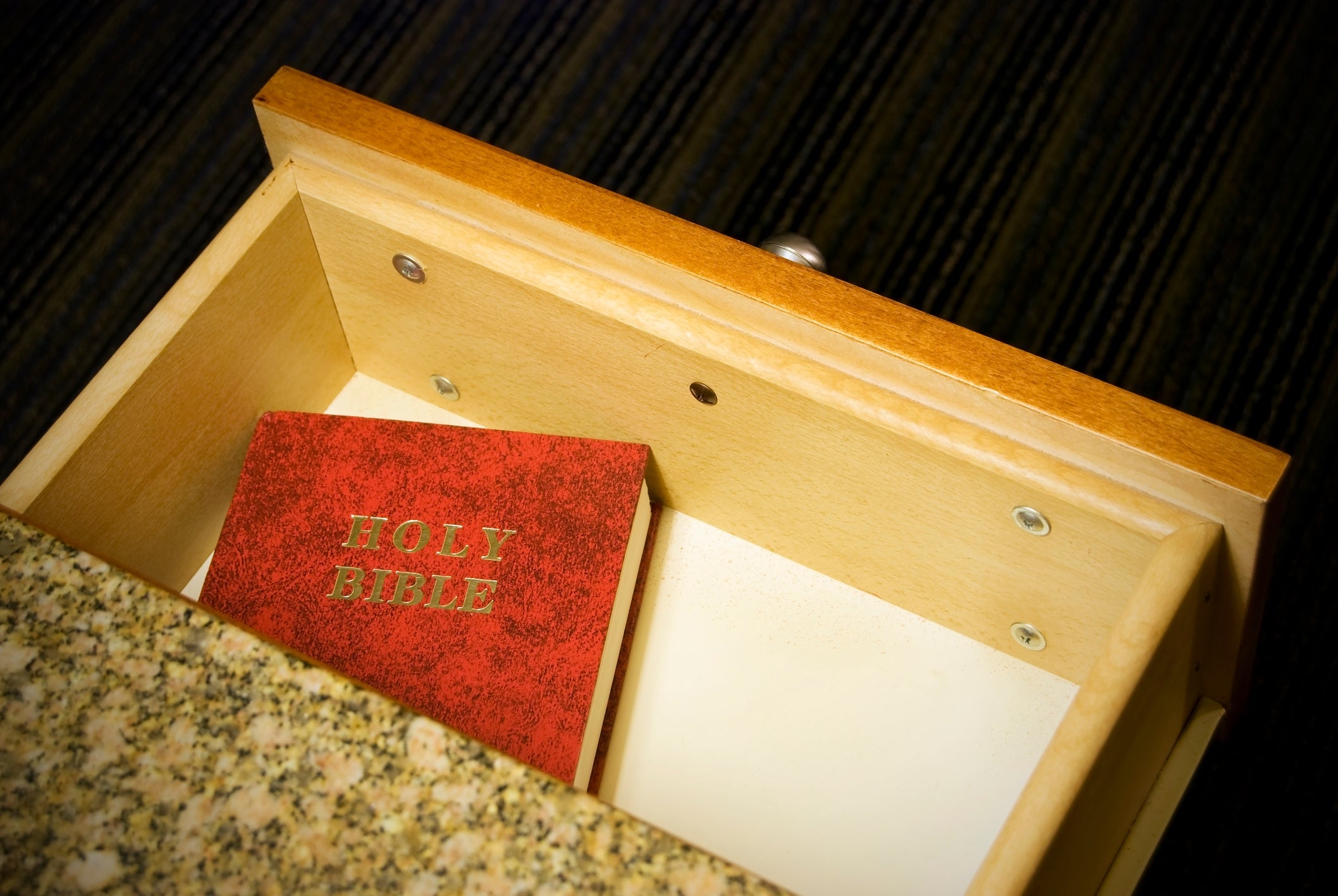 Believe it or not, that "Should you take it or shouldn't you?" gray area is occupied by another, somewhat surprising, item: the Gideon Bible in the nightstand. Gideons' International sent a guy to speak at a church I attended one Sunday morning and the speaker shared the Christian organization's dirty little secret: the Gideons actually want you to steal the Bible from your hotel room and can't get enough people to do it. (Perhaps anyone who cares enough about what the Bible has to say about anything to even want a Bible worries just a little that stealing — especially stealing something like a Bible — is the sort of thing people burn in hell for).