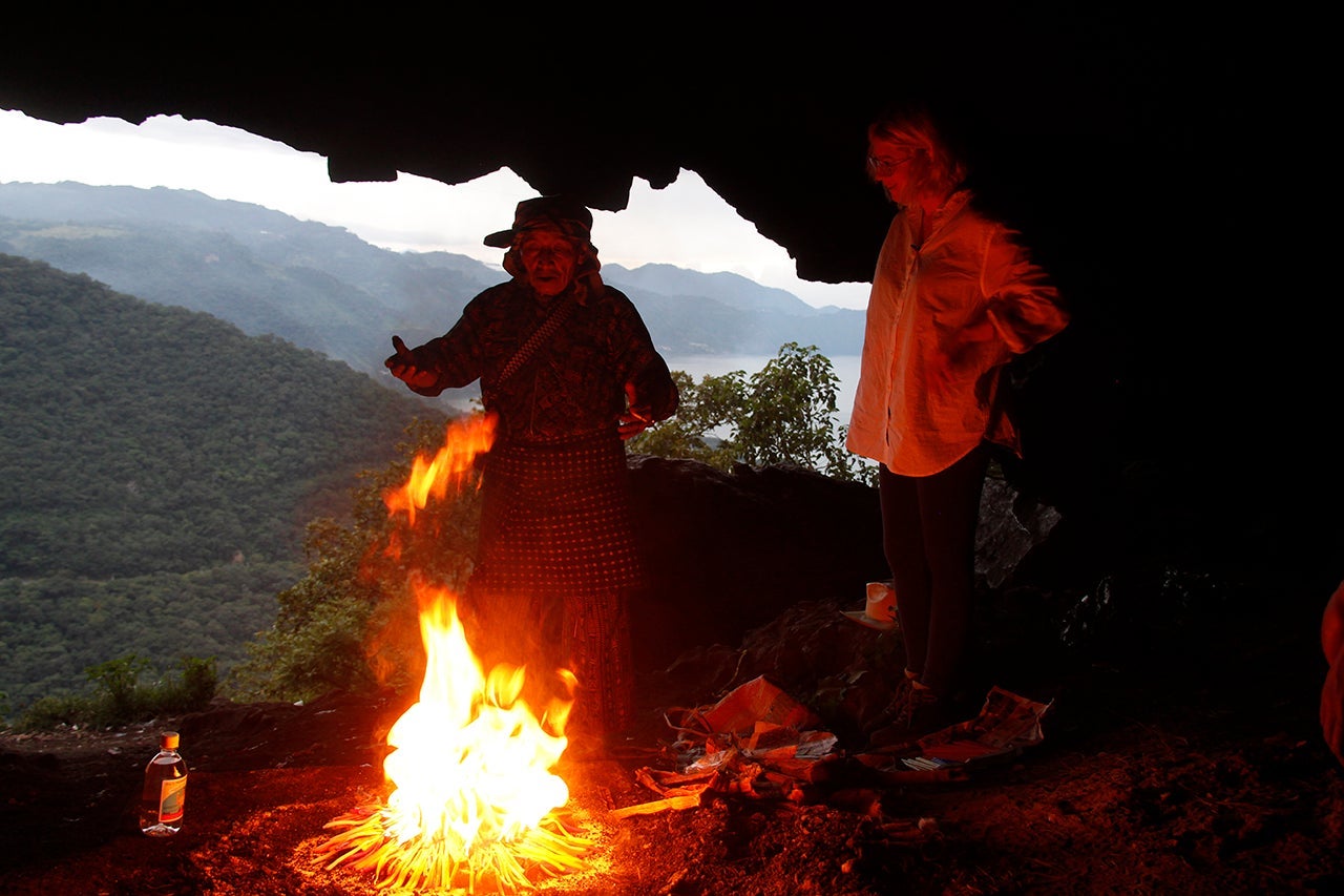 TPG staffer Isabelle Raphael goes to a Mayan fire ceremony in Lake Atilan. (Photo by Jorge Rodriguez)
