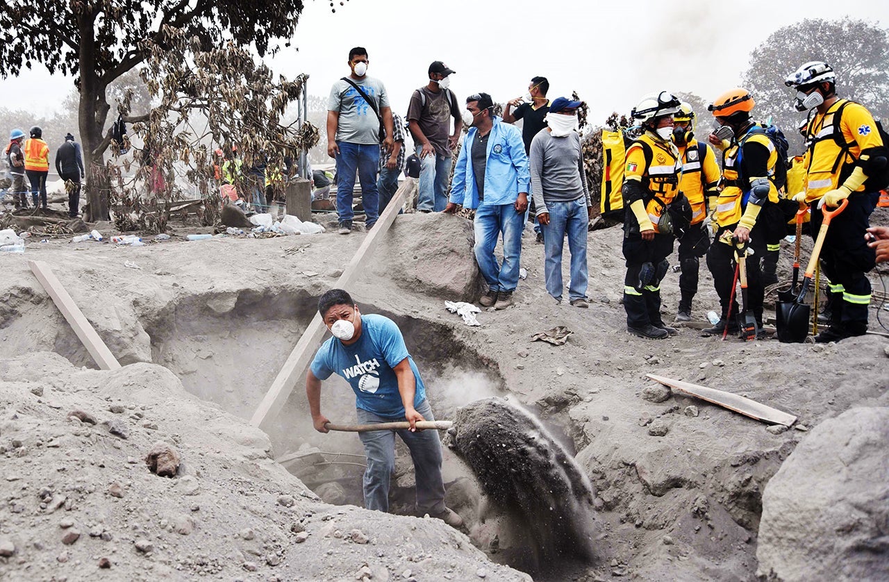 Residents search for victims in the ash-covered village of San Miguel Los Lotes on June 10, 2018, days after the eruption of the Fuego Volcano. (Photo by ORLANDO ESTRADA/AFP/Getty Images)