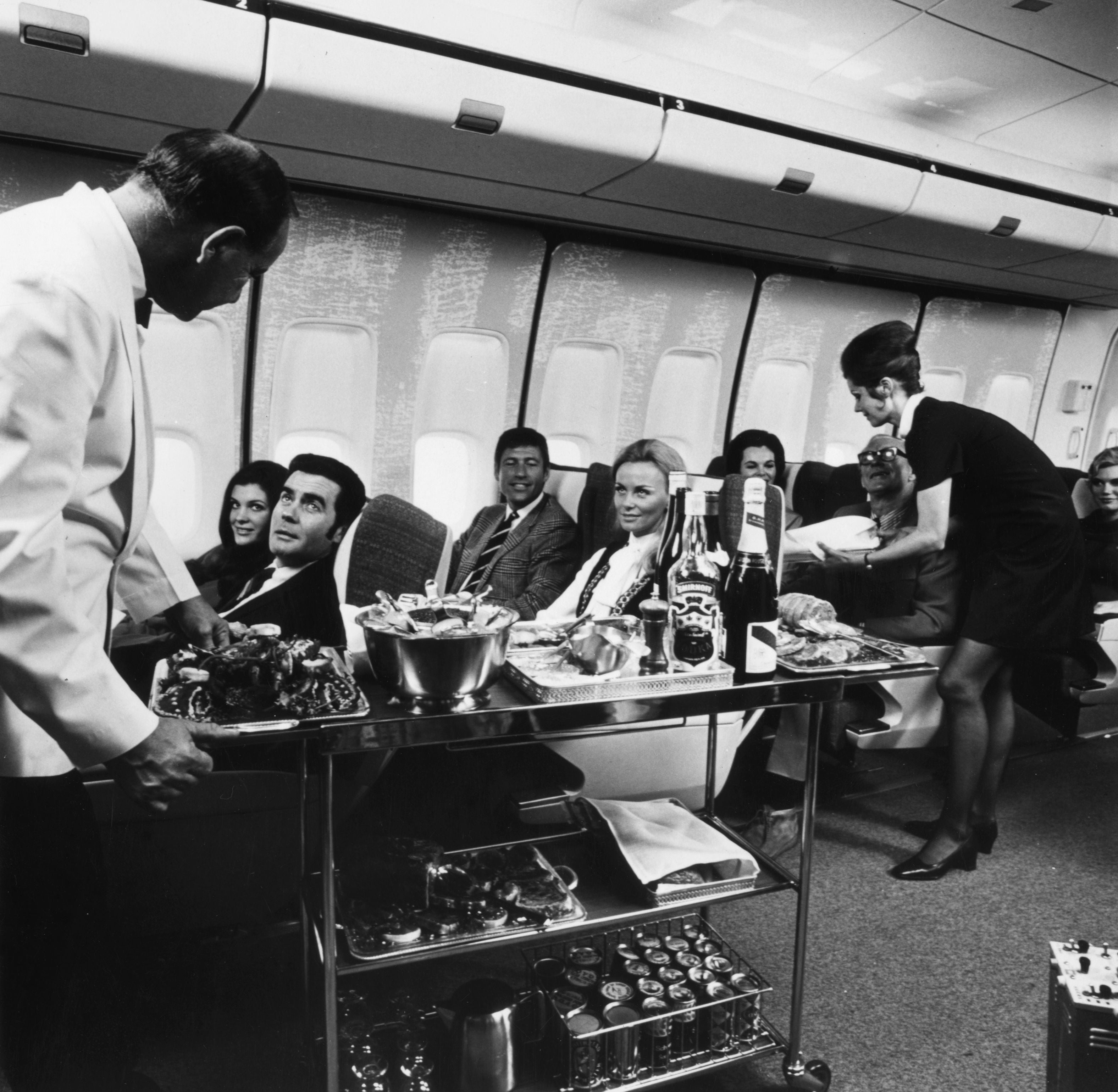 As the flying experience was all about glitz, glamor and consuming an endless amount of free alcoholic beverages, it's no surprise that coach seats had about three to six more inches of legroom than economy seats do today. In fact, economy class seats in 1969 were more akin to what we'd expect in business class now. So, after your inflight lobster dinner, you could recline and drift off to sleep. That is, if you could stomach the loud sounds of the piston engines and heavy, sometimes dangerous, turbulence.