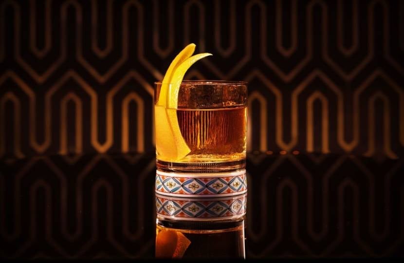 Rosina's Old Fashioned made with burbon, bitters, sugar cube and a citrus twist.