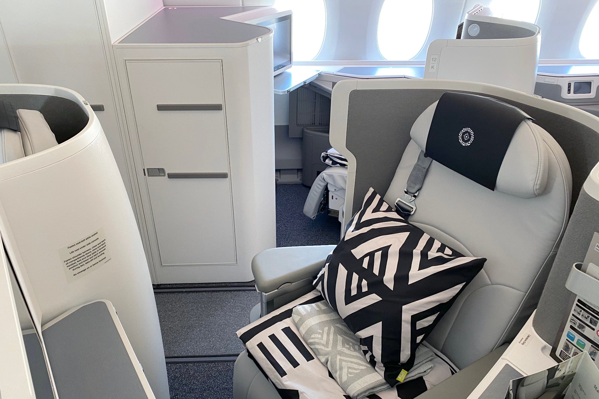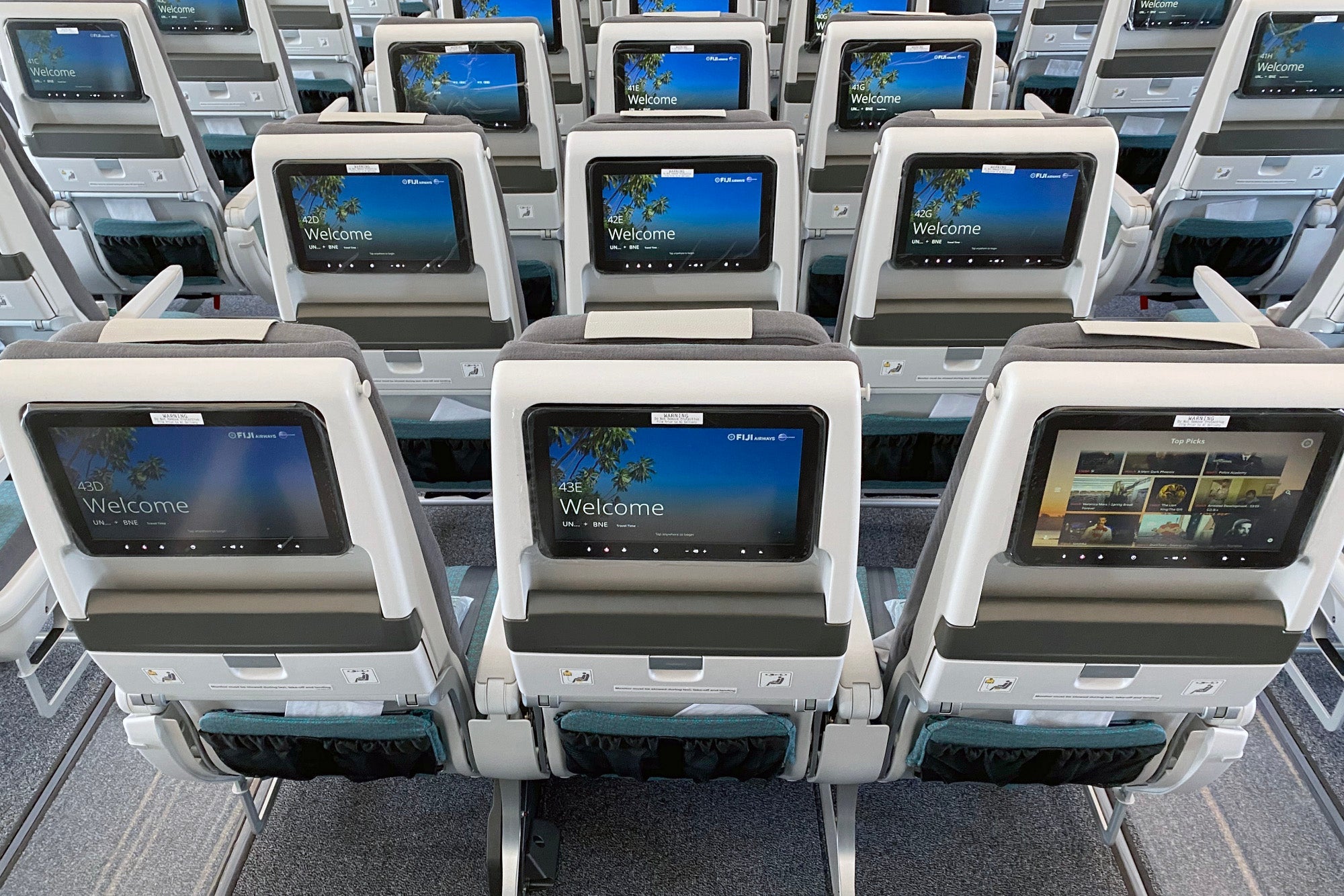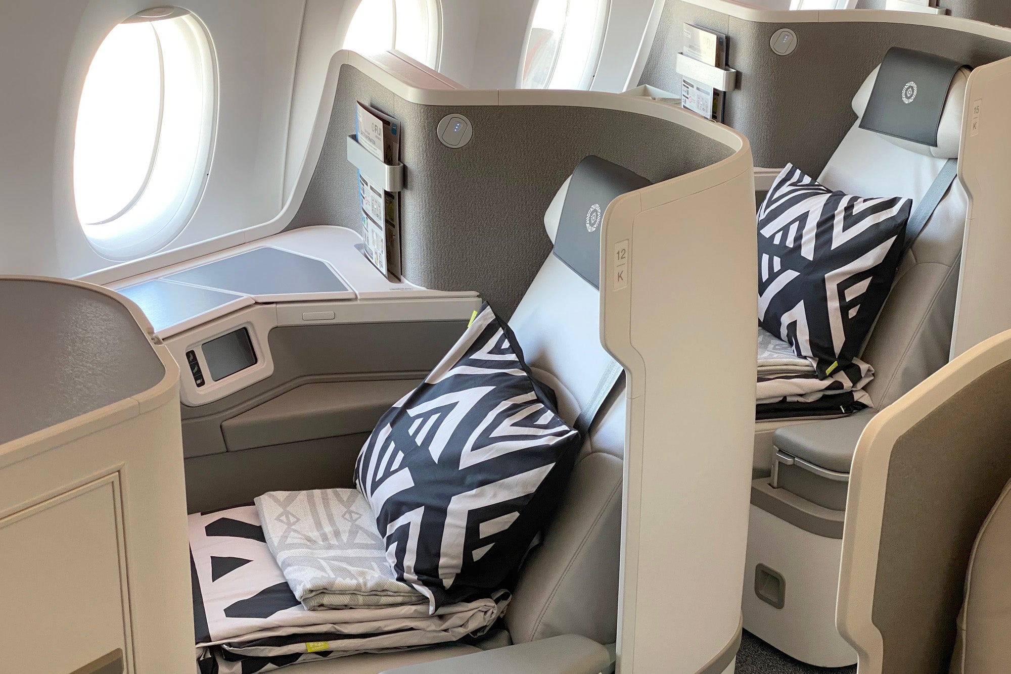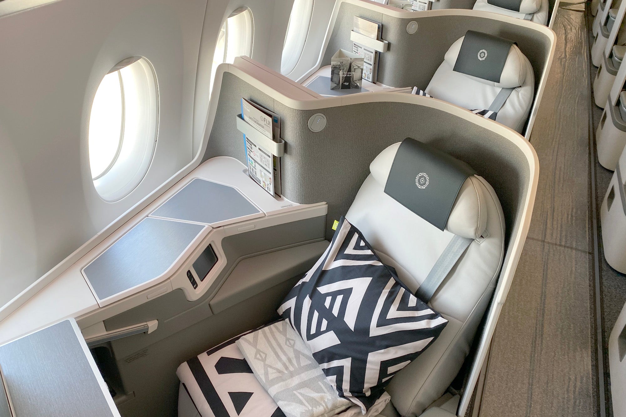 Fiji's A350 has a total of 33 Collins Aerospace Super Diamond business-class seats, all arranged in a 1-2-1 configuration. While some carriers based at leisure destinations continue to opt for a couples-friendly 2-2-2 arrangement — like Hawaiian with its A330s and Air Tahiti Nui with its 787-9 Dreamliners — Fiji Airways went for a more-competitive all-aisle-access product.